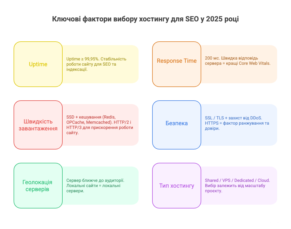 Хостинг напрямую влияет на SEO и пользовательский опыт. В 2025 году ключевые факторы — высокий uptime, быстрый response time, поддержка современных технологий (HTTP/2, кэширование, CDN) и безопасность. Правильный выбор провайдера поможет не только повысить позиции сайта в Google, но и сделать его стабильным и удобным для посетителей.